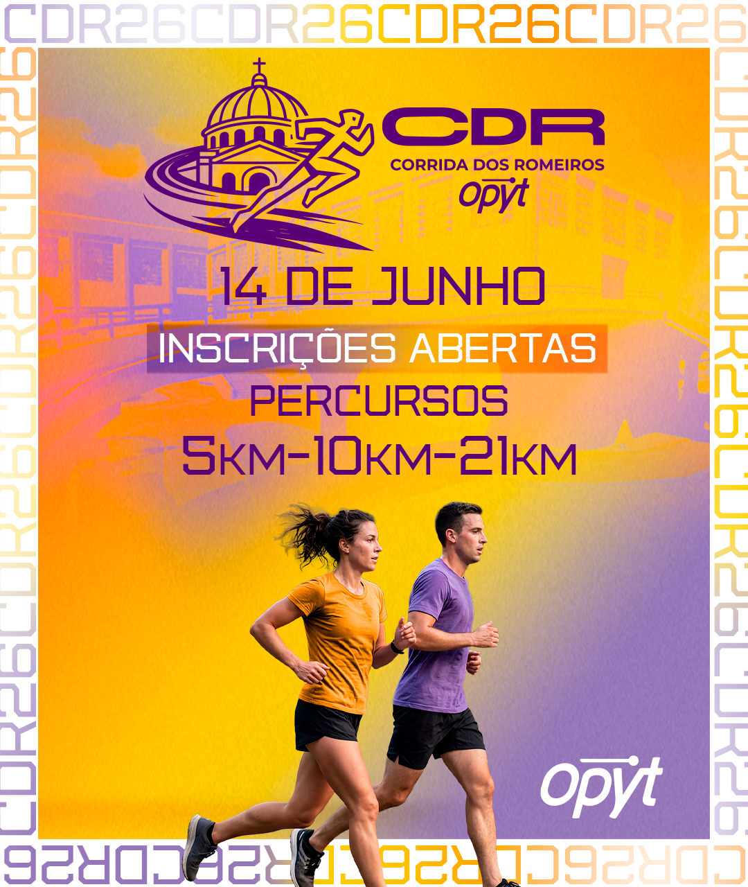 A Corrida dos Romeiros – Opyt acontecerá no dia 14 de junho de 2026, com as distâncias de 5 km, 10 km e 21 km (meia maratona). O percurso terá duração de 3 horas, com largada na Rodovia dos Romeiros (GO-060) e chegada no Santuário Basílica do Divino Pai Eterno, em Trindade. Todos os participantes que completarem a prova receberão medalhas de participação (finisher).